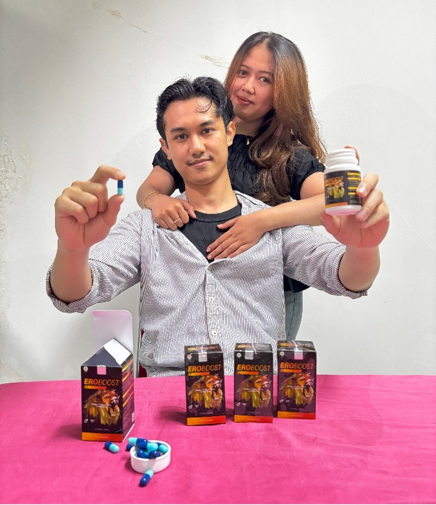Pasangan Saya biasa menggunakan tissue magic dan Cialis tapi semenjak gunakan Eroboost Dia lebih kuat dan bertahan sampai beronde-ronde, beda dengan obat-obatan yang bikin ketergantungan. Klo Eroboost tidak.