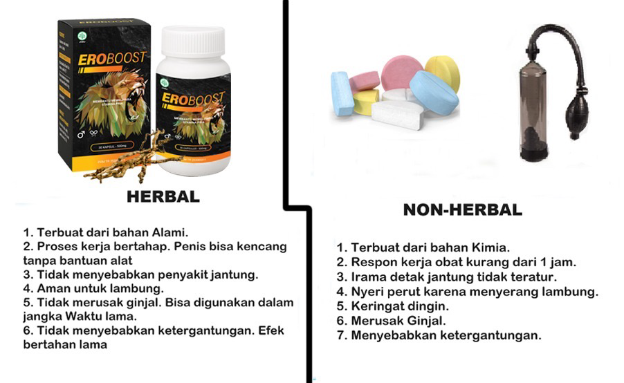 Untuk metode umum melibatkan pembesaran penis seperti operasi, menggunakan alat pijat pompa vakum, mesin peregangan otot atau menggunakan Stimulan Seksual Hal ini dapat menyebabkan komplikasi. Sedangkan Eroboost adalah kapsul yang terbuat dari ekstrak alami pekat, sehingga aman untuk pria. . Eroboost mudah digunakan dan memungkinkan Anda melihat hasil jangka panjang dengan penggunaan rutin.